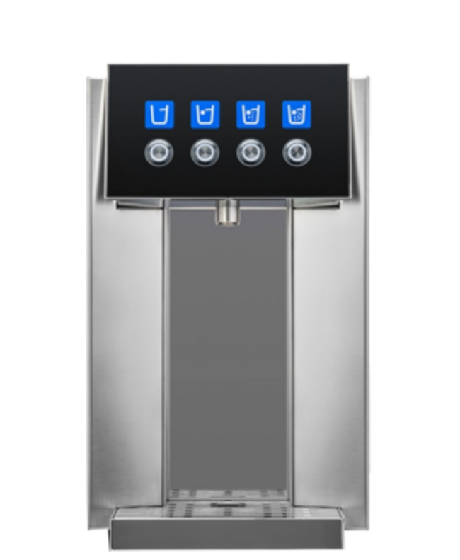 Prémiový a udržitelný výdejník vody, model E7 kombinuje nejnovější technologie v oblasti energetické účinnosti, ekologie a hygieny. Umístěný nad unikátním vrškem z materiálu Corian® s integrovanou odkapávací miskou a antimikrobiálním dotykovým panelem je výdejník E7 synonymem elegance. Díky inovativnímu připojení SIMSecure a naší unikátní bezdotykové technologii SensorBeamTM, E7 poskytuje čerstvě filtrovanou chlazenou, ambientní, perlivou a horkou vodu, která je ošetřena proti bakteriím integrovanou UV lampou.